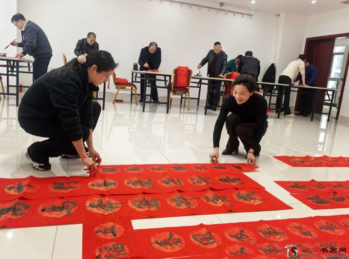 活动现场,暖意融融、纸墨飘香。参与送春联的20位书法老师热情饱满,凝神聚气,挥毫落墨书写新春祝福。一个个各具特色的“福”字跃然纸上,一副副寓意吉祥的春联一气呵成。“马年纳福财源广,新岁迎祥福寿全”“马踏祥云迎好运,春携瑞气送平安”“金马扬鞭开伟业,春风送暖展宏图”……一横一竖,书写的是方正汉字;一撇一捺,传递的是美好祝福。现场等候的人们兴致勃勃,帮忙牵纸、吹晾墨迹,欢声笑语不断,其乐融融。